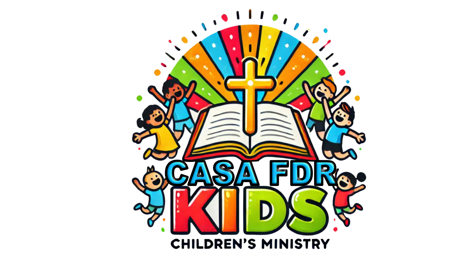 Nuestro logo refleja lo que somos en CASA FDR KIDS: un ministerio lleno de alegría y fe. La Biblia en el centro muestra que la Palabra de Dios es nuestra base, los rayos de luz representan Su guía, y los niños celebrando expresan el gozo de estar en Cristo. Los colores vibrantes crean un ambiente acogedor y lleno de energía. Todo el diseño transmite que auí los niños pueden crecer en la fe de manera feliz y segura.